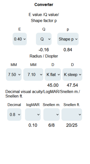 This calculation does not replace the objective values given by eye measuring devices.